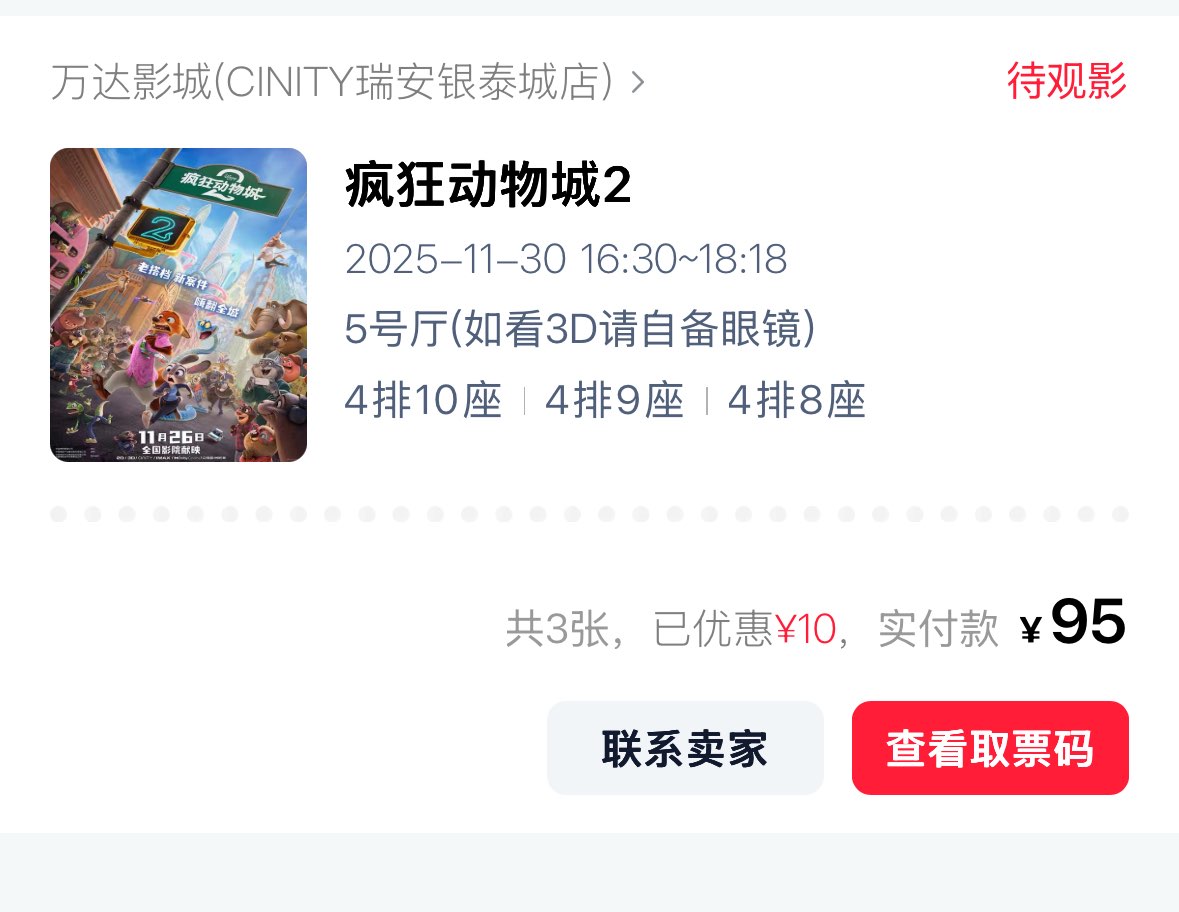 万达影城瑞安银泰店电影票