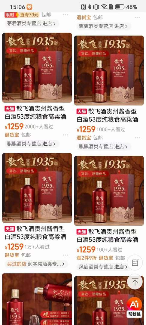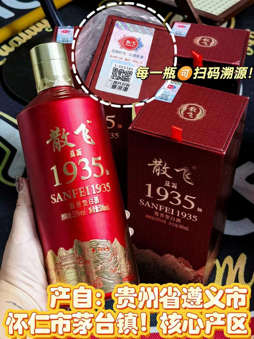 散飞1935白酒,旗舰店正品。亏本处理,300元/2瓶。一箱6瓶。送人自喝都划算!