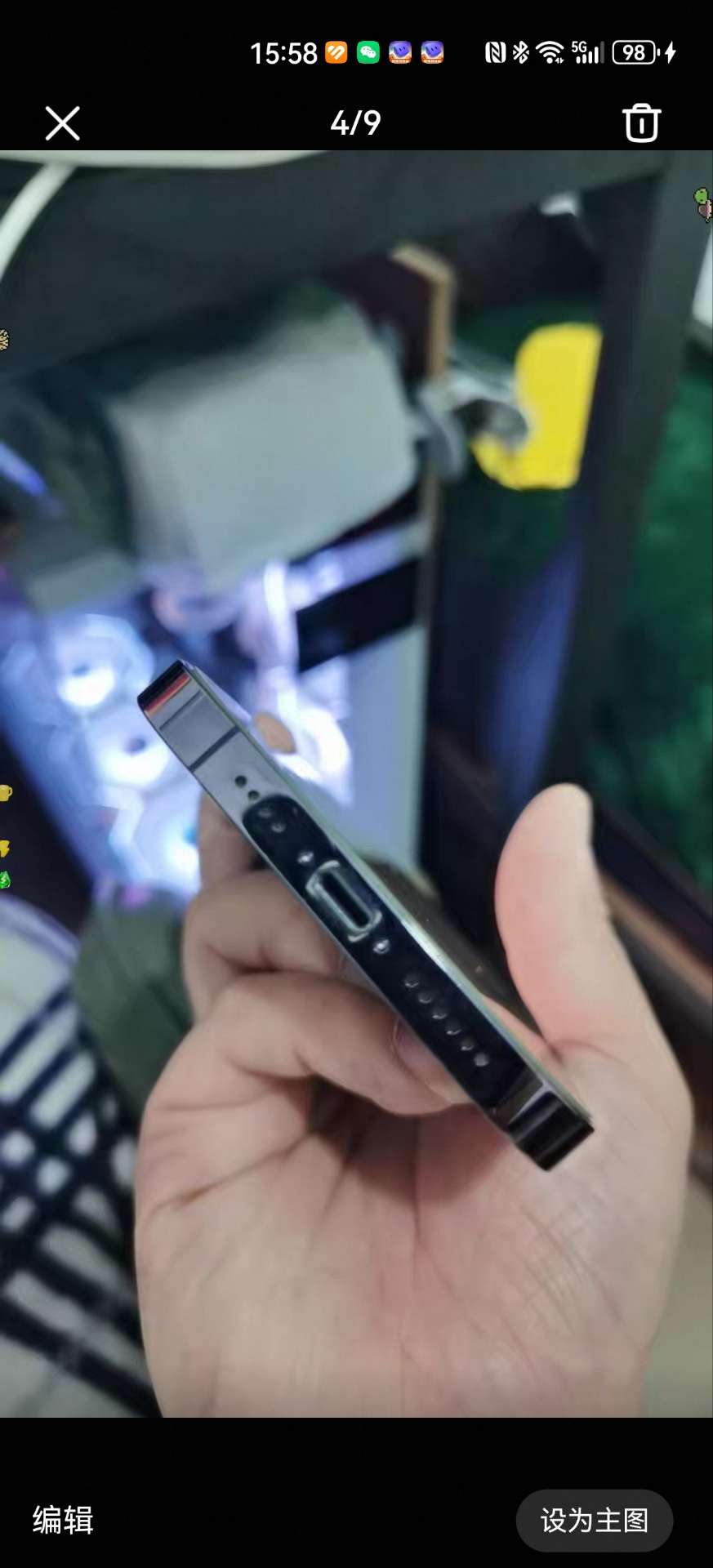 外观成色很新,边框有点小划痕,屏幕无划痕,就是顶了一下,出了个黑点,不会扩大