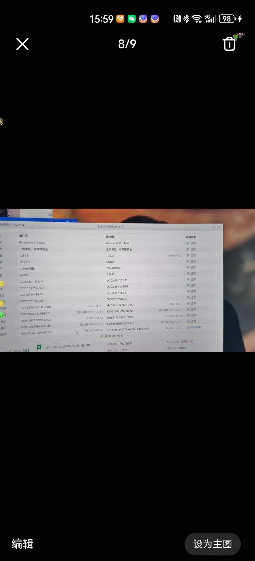 苹果14 Pro Max 128G暗紫色,国行,支持双卡5G,全网通,电池健康86%,爱思全绿,检测正常