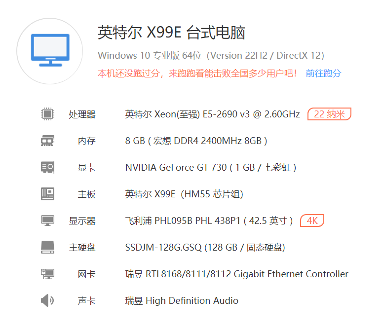E5-2690v3主机DDR4内存8G 1G独显